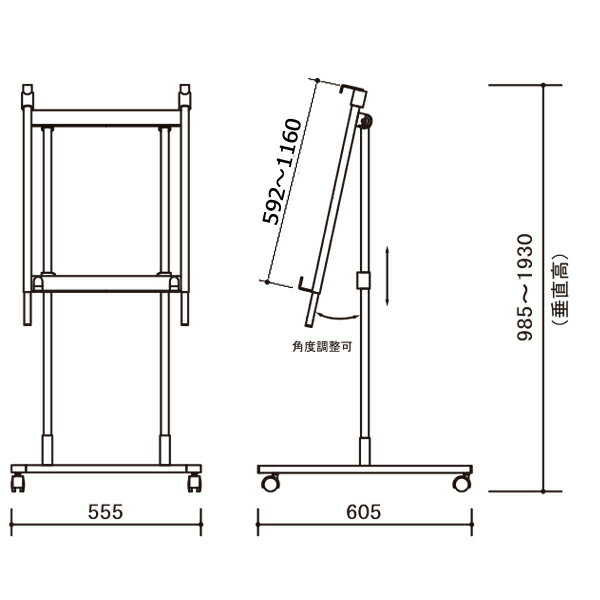 ご購入時は、イーゼル写真の各部寸法と実際のパネル外寸をご確認下さい カラー シルバー スタンドサイズ 幅 555mm 奥行き 605mm 高さ(垂直高)985〜1930mm その他 ■高さ調節可能 ■ スタンド傾斜機能付き ■日本製 ※本品はスタンドのみで、パネルは含まれません。