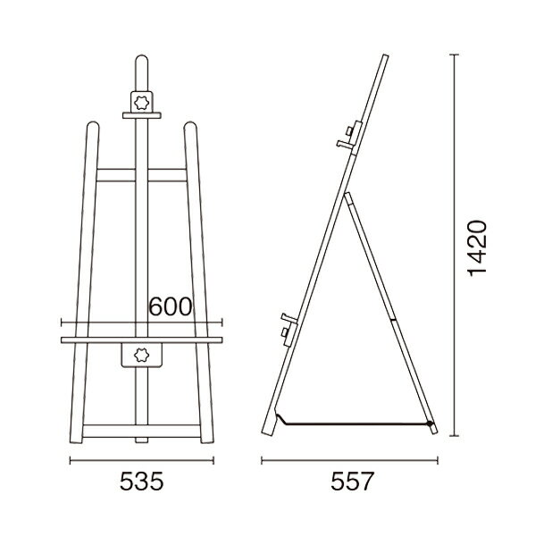 対応サイズ 厚み 45 mmまで 【B1タテ/A1/B2/A2ヨコサイズ対応】 製品サイズ 幅 600mm 奥行き 557mm 高さ(垂直高)1420mm 重量 2.8kg カラー ブラウン・ブラック・ホワイト 材質 木製 その他 ・高さ調整機能付き ・片面タイプ ・屋内用 ※本品はスタンドのみで、パネルは含まれておりません。